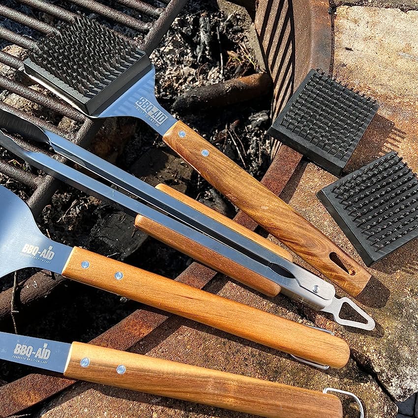 If you’re looking for a high-quality grill cleaning tool designed to quickly and effectively remove burnt-on residue from your grill, this BBQ-AID grill brush is ideal. With its durable construction and stainless steel bristles, this brush offers superior cleaning power and is built to last. The large wooden handle provides a comfortable grip and allows for easy maneuvering, while the unique design cleans all angles of your grill. Safe for use on porcelain, ceramic, infrared, Weber, Char-Broil, gas and cast iron grates, this grill brush is a must-have accessory for maintaining the cleanliness and functionality of your grill.